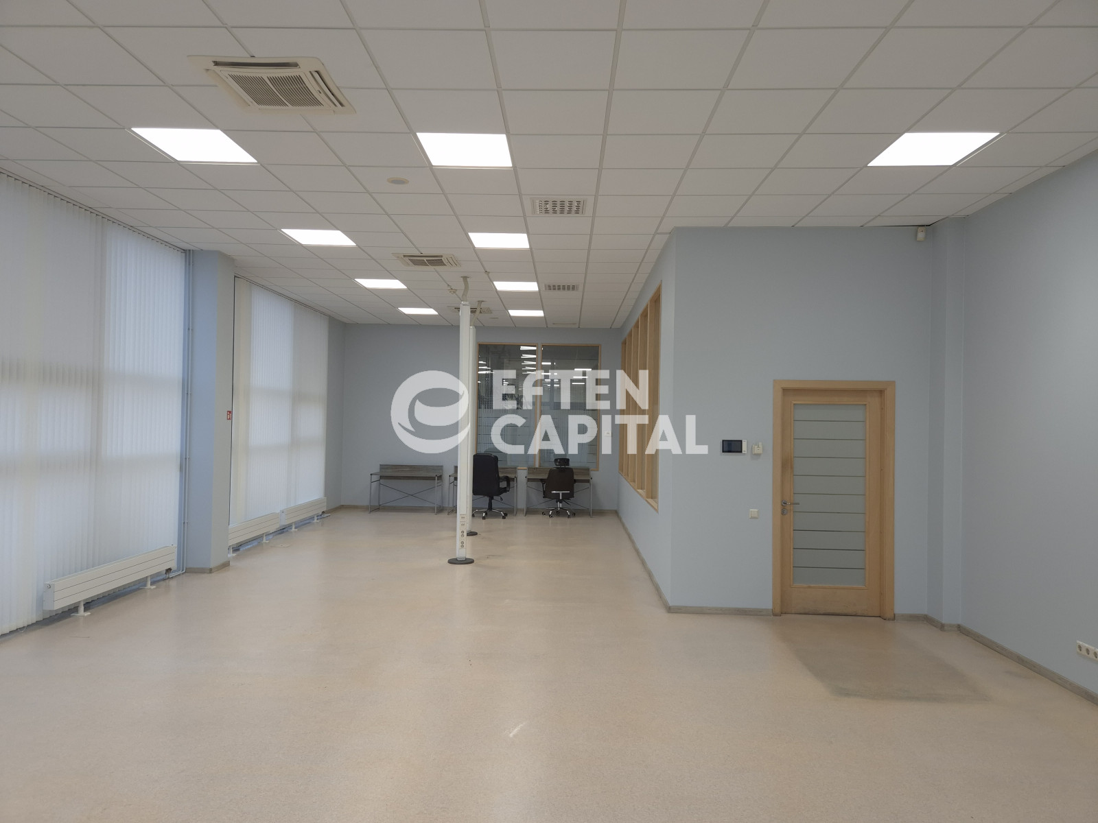The offices are equipped with centralized ventilation and air conditioning, ensuring a comfortable indoor climate throughout the year.