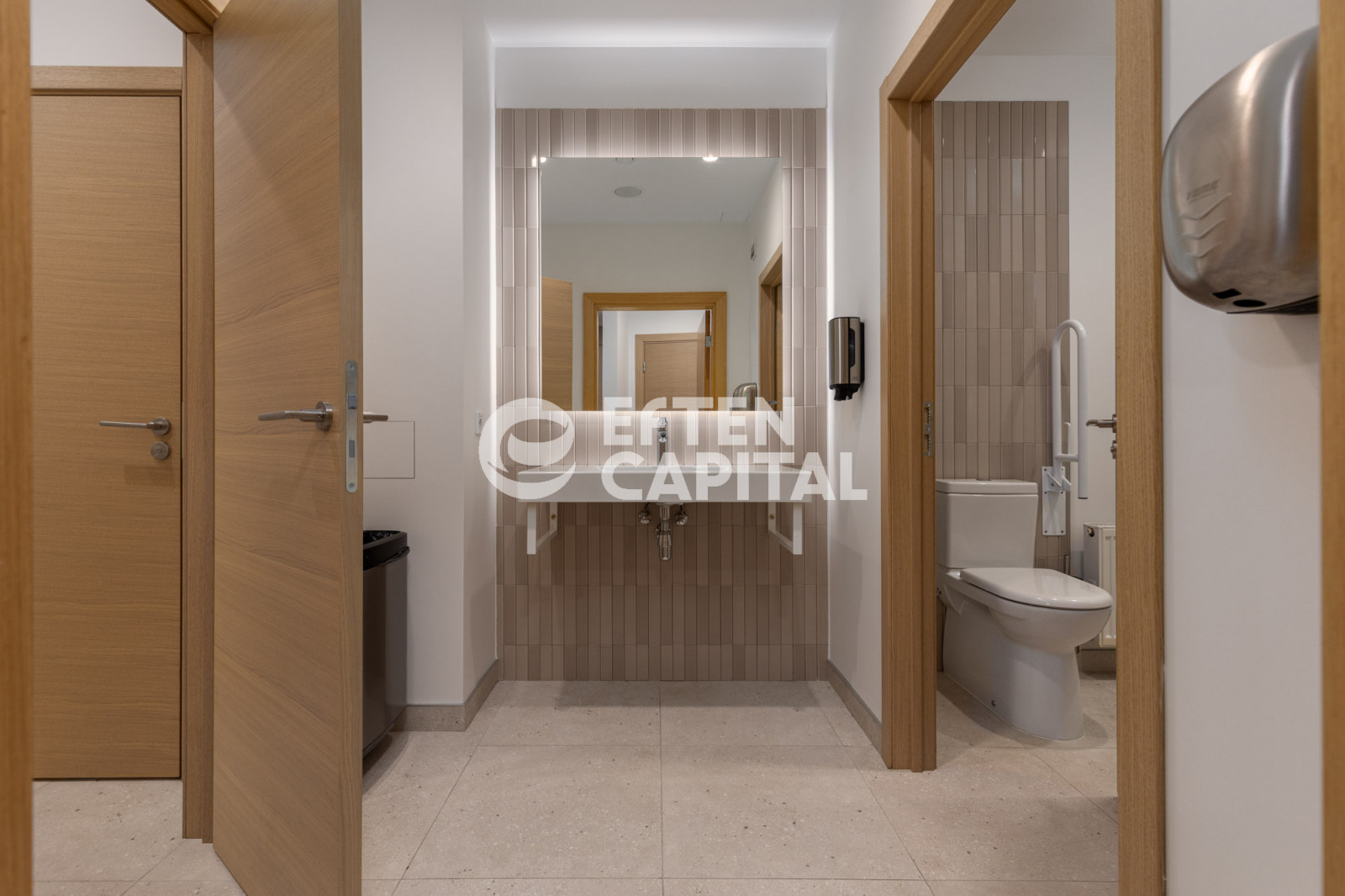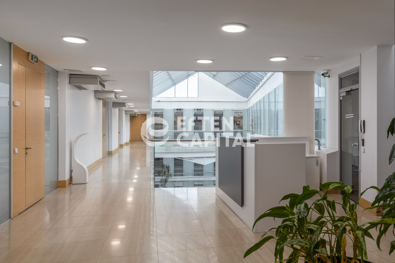 The offices are equipped with centralized ventilation and air conditioning, ensuring a comfortable indoor climate throughout the year.